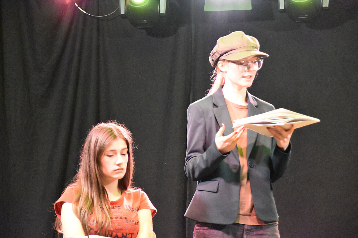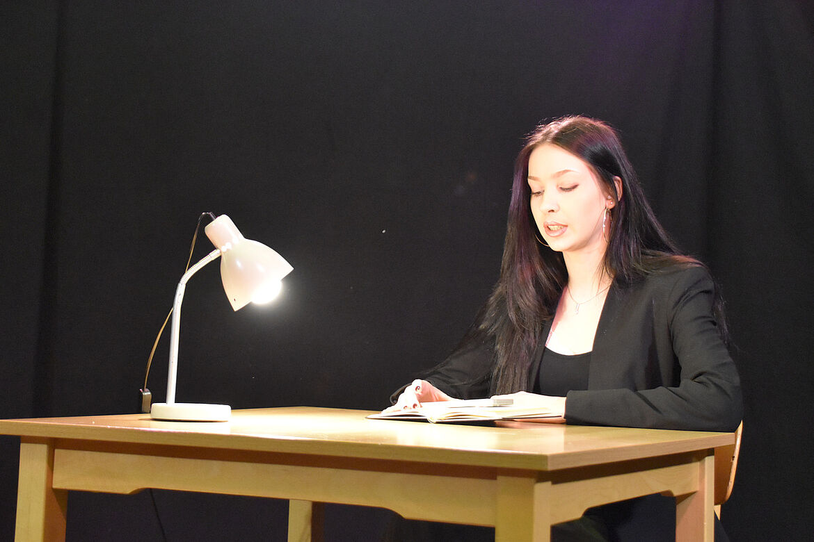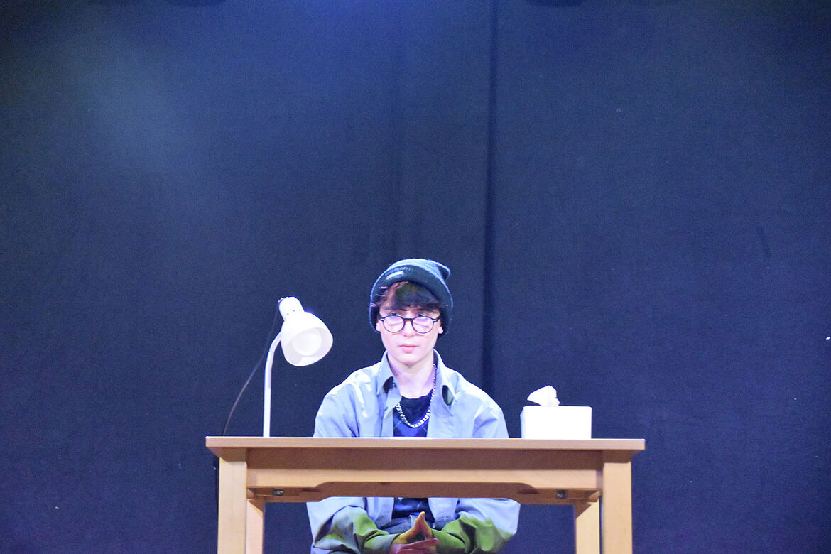 In der zweiten Hälfte nimmt das Stück so richtig Fahrt auf und besonders eindrucksvoll ist Emilias Poetry-Slam-Monolog „Verdrängen ist mein Lieblingsspiel“, geschrieben und großartig vorgetragen von Rebecca, ein sprachlich dichter, rhythmisch präziser Text über Perfektionismus und Selbstbetrug. Das Publikum erlebt Wellen aus Lebensplanung, Leere, Druck und innerer Anklage – ein Kunstwerk aus Sprache.